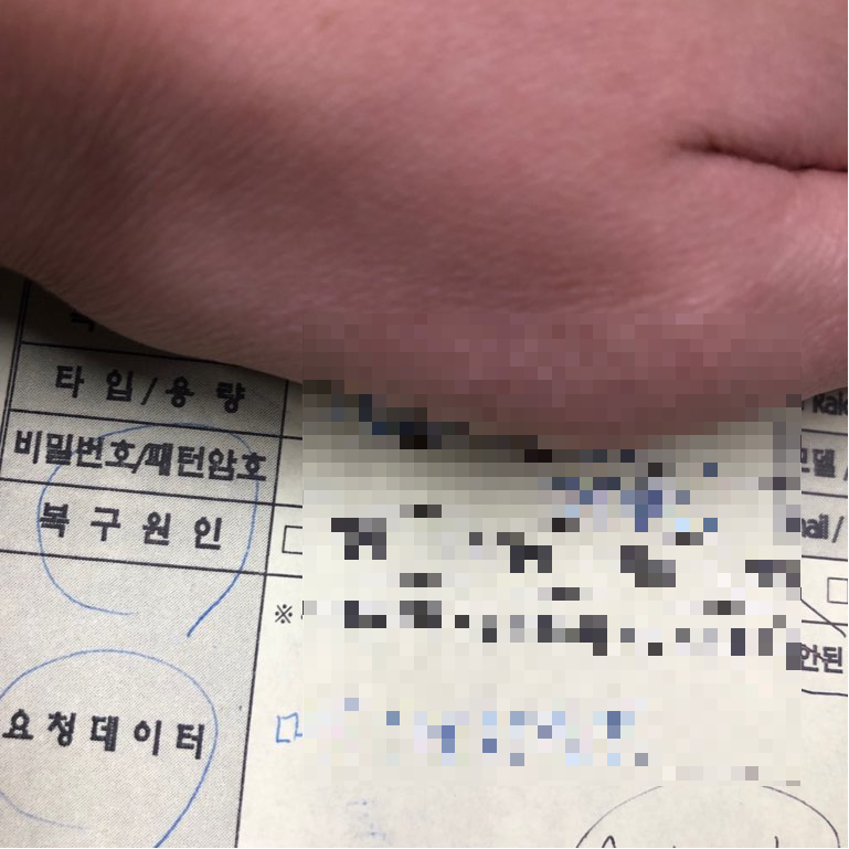 실수로 자료를 삭제한 경우 소프트웨어적인 방식으로 진행됩니다 작업 기간은 1~2일 정도 소요되고 있습니다. 접수는 내방, 택배로 가능하시니 참고 부탁드립니다. 요즘 나오는 기기들은 모두 보안등급이 높아서 저희가 함부로 데이에 접근할수가 없습니다. 그렇기때문에 패턴이나 잠금설정한 비밀번호를 정확히 저희에게 알려 주셔야지 복구시도가 가능합니다! 설정없이 사용하신경우는 상관없으나 설정해두시고 사용하셨다면 꼭 알려주셔야 합니다!