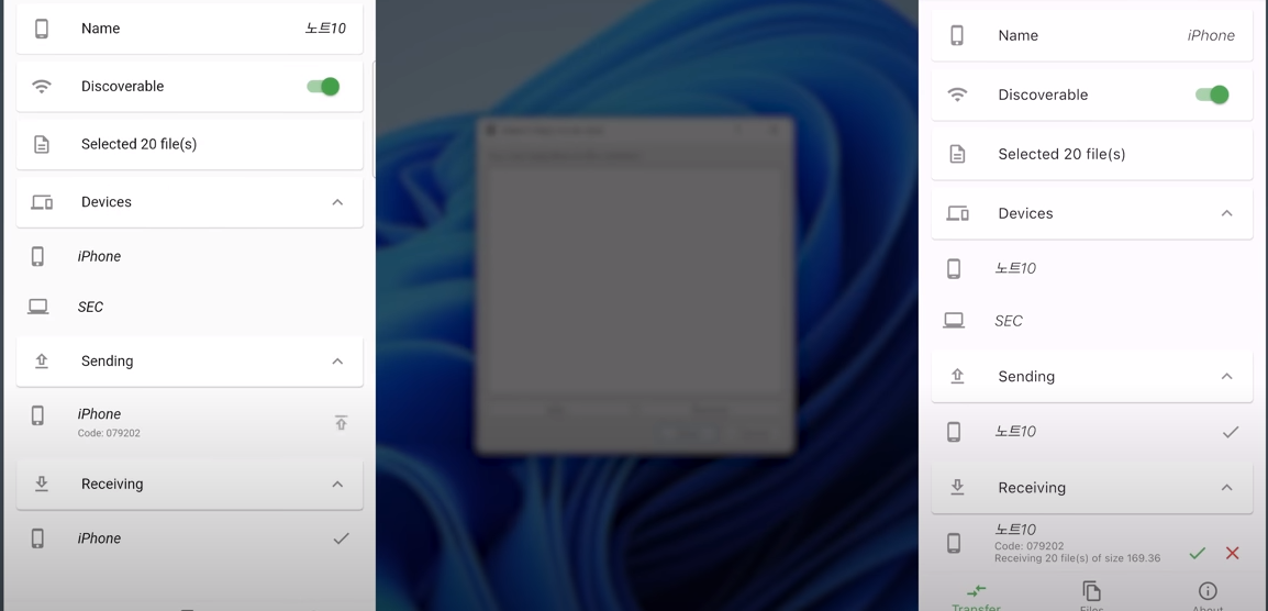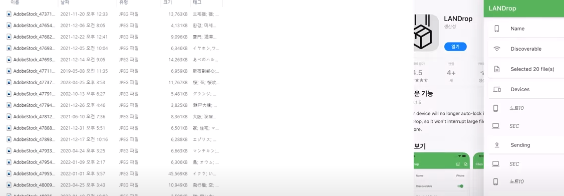 아이폰과 데스크톱간의 파일주고받기를 할꺼라 저는 앱스토어에서 Landrop 검색하고 다운받았습니다. 아시겠지만 앱스토어는 검증되지 않은 어플을 등록할 수가 없습니다. 검증된 것들만 결과를 노출시키기 떄문에 안심하고 다운받으셔도 됩니다! 다운로드가 완료 되었으면 사용하는 방식은 에어드롭이랑 크게 다르지 않습니다 컴퓨터에 있는 파일을 폰으로 보내려면 Landrop에 내 폰을 선택한다음엔 원하는 데이터를 전송시키면 됩니다.
