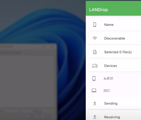 컴퓨터나 노트북은 네이버에 Landrop 검색해서 나오는 링크 타고 다운받으면 됩니다 다운로드를 완료하면 실행을 누르면 끝입니다, 설정 네모박스가 바로 나올수도 있고 그 어플있는데 아이콘 클릭해야 설정 네모박스가 나올수도 있습니다. 첫번째 네모는 이름입니다. 두번째는 받은 파일이 다운드될 경로 그리고 체크박스는 네트워크 상에서 검색이 될지 안될지를 설정할 수 있습니다.