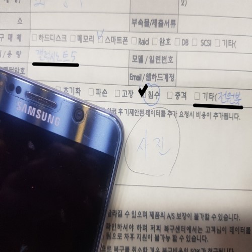 스마트폰을 사용하다보면 예기치 못한 사고들이 발생되기도 하는데요. 갤럭시노트5를 사용하시는 분이셨는데 바지 주머니에서 꺼내지 않고 세탁기로 바로 직행하셨다고 합니다. 한참을 찾았는데 없어서 회사에 두고 왔나 싶었다는데.... 빨래를 꺼내다 세탁기에서 발견했다고 합니다. 이미 침수상태로 전원이 들어오지 않아 바로 공식센터로 문의하셨다고 해요. 공식센터에서는 복*구 작업은 진행하지 않기 때문에 사설 업*체로 문의하라는 안내를 받으시고 인터넷으로 폭풍 검색을 하셨다고 합니다. 이렇게 많은 업! 체! 가 있는지도 처음 알았고 침수상태에서도 시도 가능하다는 안내를 받으시고 믿을 수 있는 곳을 선택하시고 바로 택배로 보내주셨답니다.