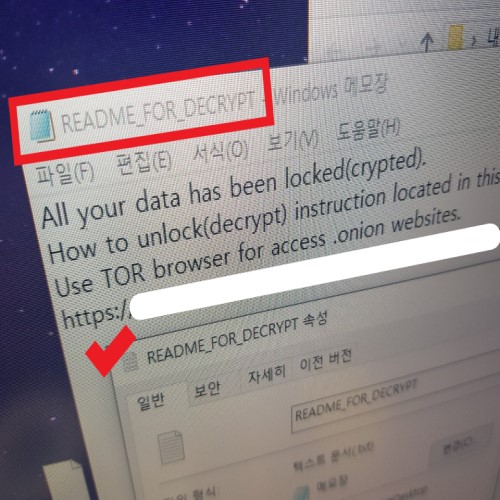 RANSOMWARE에 감 - 염 당시 저장 매체가 연결되어 있었다면 그 곳 DATA까지 모두 잠겨버리게 됩니다. 그렇기 때문에 여러 개 만들어 보관하시는 것이 중요합니다. 평소 귀찮아서 미루는 일이 한 번의 실수로 소중한 데이터를 잃게 하거나 큰 자산을 잃게 하기 때문에 소중한 FILE 은 본인 스스로 지키시는 것이 가장 바람직합니다. 파일을 공격하고 상당한 금액을 갈취하는 것은 동일하지만 랜 - 섬 종류마다 나타나는 증세, 제시하는 조건, 처리하는 방법 등이 상이합니다. 그렇기 때문에 이상 현상이 발생되었다면 반드시 정확한 점. 검. 을 받으시는 것이 필요합니다.