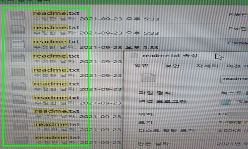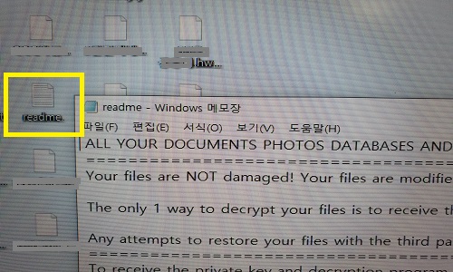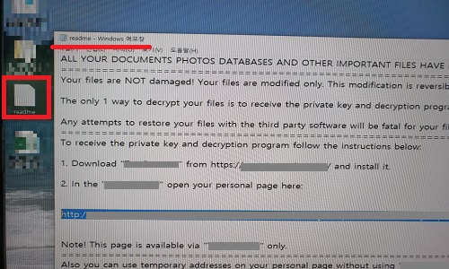 컴퓨터 랜섬웨어로 나타나는 증상은 아이콘 변경, 확-장-자 변경 외 readme 메모장 생성인데요. 이 메모장은 바탕화면 또는 FILE이 저장된 폴더마다 하나씩 생성되기 때문에 쉽게 확인 가능합니다. 이 리 드 미 메 모 장은 랜-섬-노-트라 불리는데요. 유,포,자가 사용자에게 남겨둔 메시지로 복-구가 필요한 상황이라면 안에 내용을 꼼꼼히 확인해보셔야 합니다. 내용은 사용자의 자료는 모두 암[호[화 되었으며 복'구가 필요하다면 남겨진 시간 안에 얼마의 비(용을 지불하라는 내용이 기록되어 있습니다.
