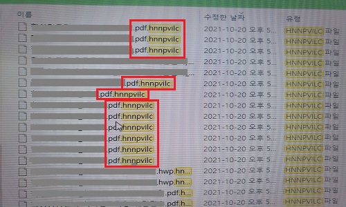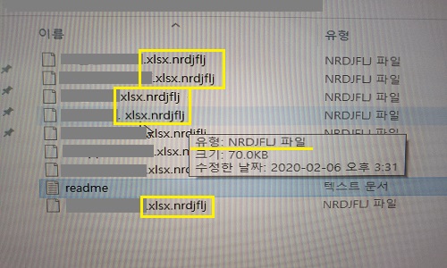 RANSOMWARE 유포자는 피씨에 저장된 파(일을 암-호-화 시키기 위해 확장자를 변경시키는데요. 이 확장자는 복잡하고 강한 알고리즘으로 만들어지고 있으며 열리지 않는 모든 자료에 동일하게 변경됩니다. 종류들 마다 고정 확장명을 이용하는 랜섬이 있는가 하면 알파벳 조합 혹은 알파벳+숫자 조합으로 이뤄진 확장명으로 감]염을 일으키는 랜,섬,웨,어,도 있습니다. 랜덤 조합으로 만들어지는 확장명은 다양하게 변형되어 셀 수 없이 많은 양이 만들어져 나오기 때문에 더욱 주의하셔야 합니다.