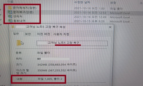 추출되는 자료들은 기기와는 분리되어 pc로 나오는데요. 문자, 통화내역, 연락처, 메모, 일정 등 문자로 이루어진 항목은 엑셀 파일로 사진, 동영상, 음성 녹음 같은 경우는 원본으로 추출되고 있습니다. 추출된 자료는 폰으로 넣는 것은 불가능하며 usb, 외장하드 같은 저장 매체를 준비해주시면 백업 후 출고 도와드리고 있습니다. 갤럭시노트5 문자복구처럼 고장폰의 경우 복,구가 성공적으로 이루어지면 메모리에 저장된 자료는 대부분 전부 추출되며 실패시 한건의 자료도 나오지 않습니다.