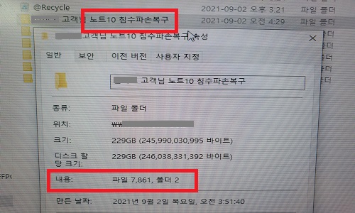 복 구 업 체를 통해 진행해본다고해도 결과를 미리 예측할 수 없기 때문에 안내는 드리고 있지만 혹시나 하는 마음에 맡겨 주시는 분들도 상당한데요. 그만큼 자료의 가치가 크기 때문에 작은 희망을 가지고 찾아주시고 계십니다. 하지만 전부 지워졌다 해도 성공했던 사례들이 있었기 때문에 최선을 다해 작업을 진행해드리고 있습니다. 결과물은 작업이 끝난 후 확인할 수 있는 점 참고 부탁드립니다.