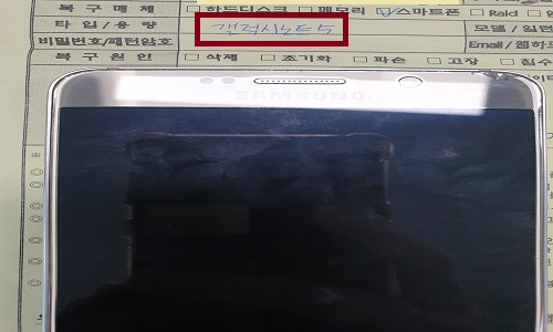 오늘은 가산동 데이터복구센터로 입고된 갤럭시노트5 문자복구 사례에 대해 소개해볼까하는데요. 겉으로는 아무런 문제가 없는 듯 보였지만 내부 요인으로 인해 전원이 들어오지 않아 복원을 요청해주셨습니다. 전원이 들어오지 않아 사용은 물론 안에 저장된 자료 또한 열어볼 수 없는 상황이 되어버렸는데요. 서비스센터 방문 후 메인보드 문제로 인해 더이상 사용이 불가능하다는 안내를 받으셨다고 합니다.